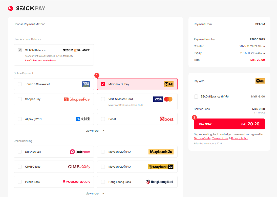 Important note: Maybank QRPay is ONLY supported under Malaysian Currency [MYR] for the majority of products in SEAGM.