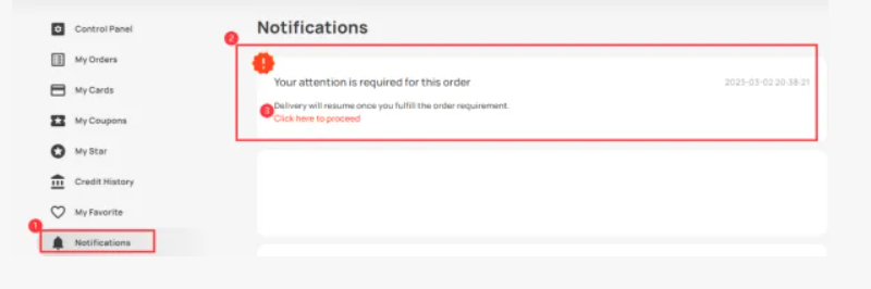 It's easy! Firstly, you may click on the notification page in your SEAGM account, then "Click here to proceed" to view more detailed information. Then, you will see the verification page displayed.
