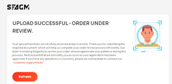 Once you have submitted the required documents, it usually takes around a few minutes to 24 hours time depending on the issue. During the review verification process, all of your purchased orders will be placed on hold, and this includes your SEAGM account. You will be notified via email or LiveChat once it's reviewed and approved by the team.