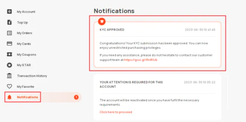 [ii] For verification that was approved, you will receive a notification on your SEAGM account:
