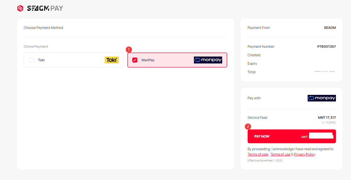 1. MonPay [MNT] payment method is only available for Mongolian users under the Mongolian Tughrik [MNT].