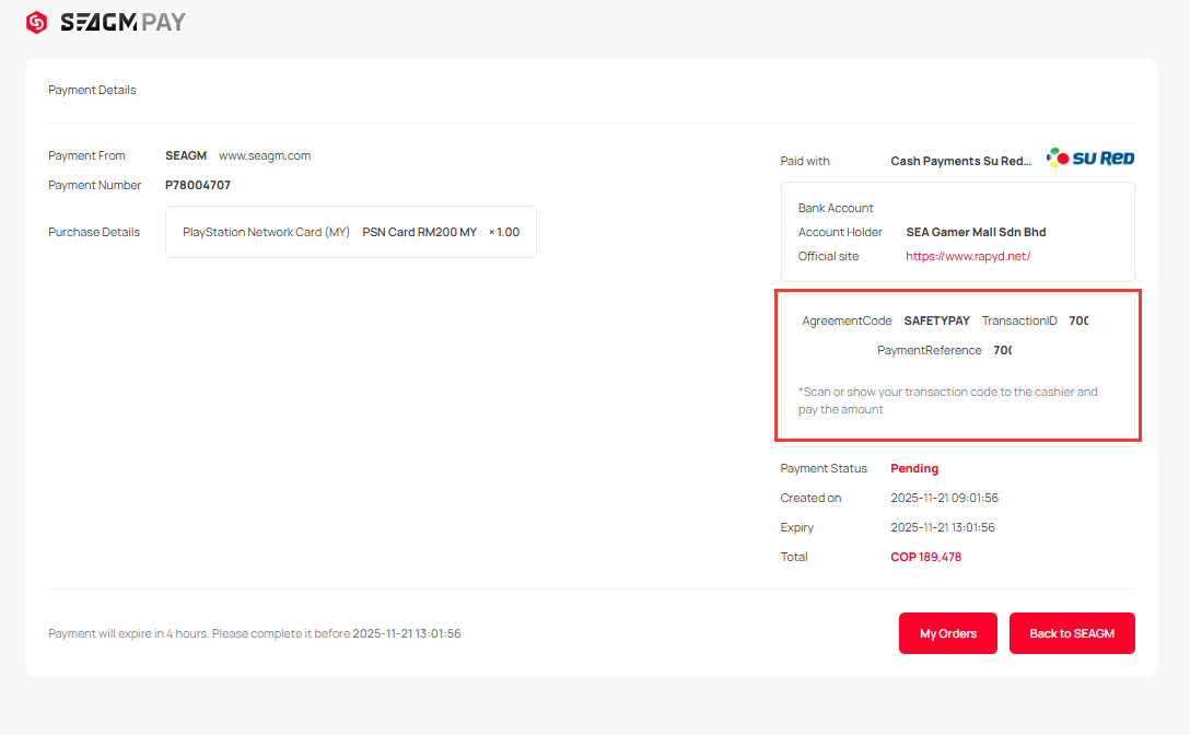 Step 4: Once the transaction is completed, your order will proceed automatically. Kindly keep the receipt with you for future reference. You may check your order status under the SEAGM profile "My Orders" section.