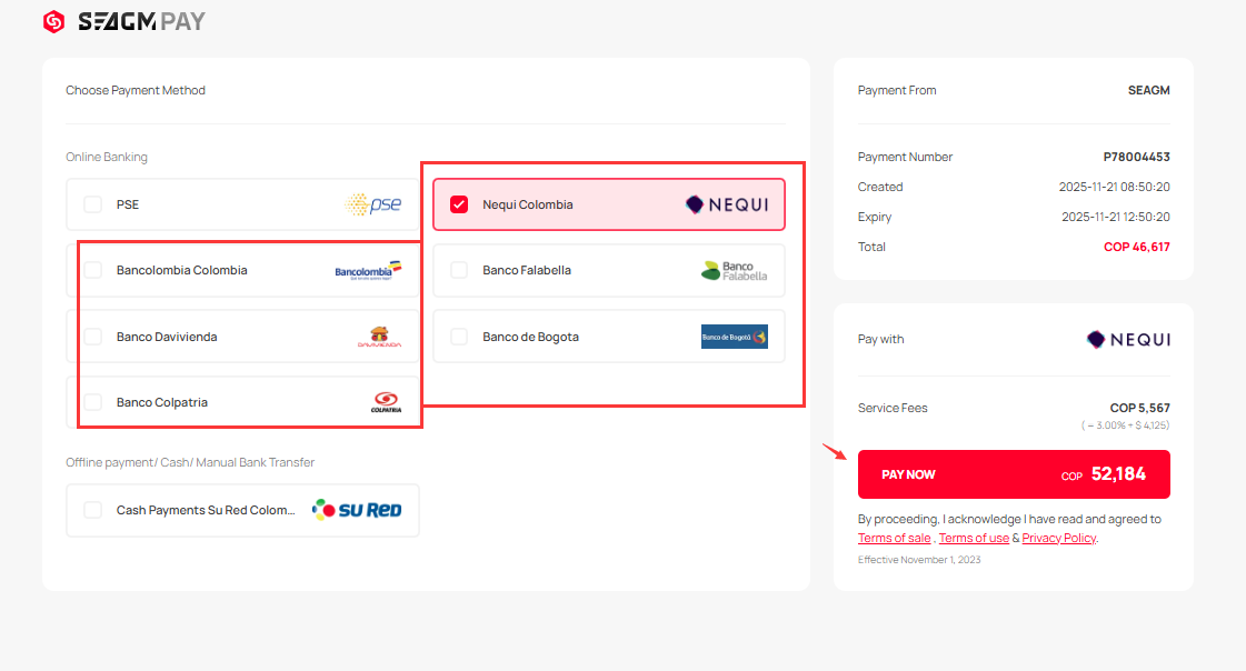 Step 2: Select your preferred method to pay under Online Banking and click on "Pay Now" to proceed.