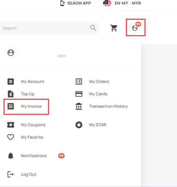 4. If your account does not have the [My Invoice] section, click on this link: https://www.seagm.com/invoices