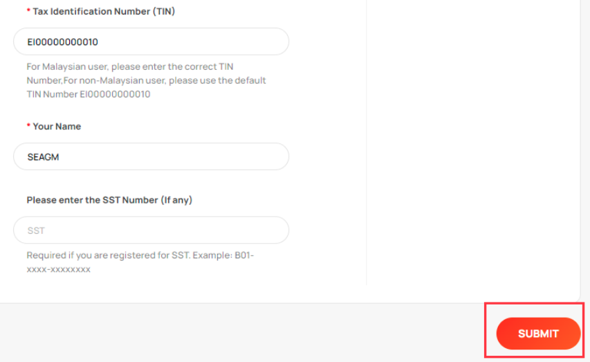 SEAGM e-invoices: Only completed payments are eligible for invoice issuance. Each payment can generate an e-invoice only ONCE. To issue an invoice, please provide your tax information. Note: