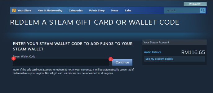 - The Steam Wallet Code sold in SEAGM was a region-currency-locked card. Steam users can only redeem the Steam Wallet Code according to their original currency settings.