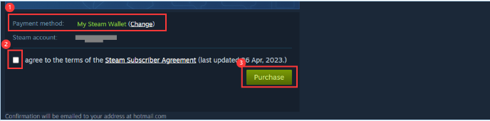 Step 10: Confirm payment method as wallet, tick the agreement box and click [purchase].