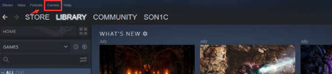 Step 3: Once logged in, kindly click on the "Games Menu" option at the top of the Steam client page.
