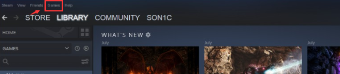 Step 3: Once logged in, kindly click on the "Games Menu" option at the top of the Steam client page.