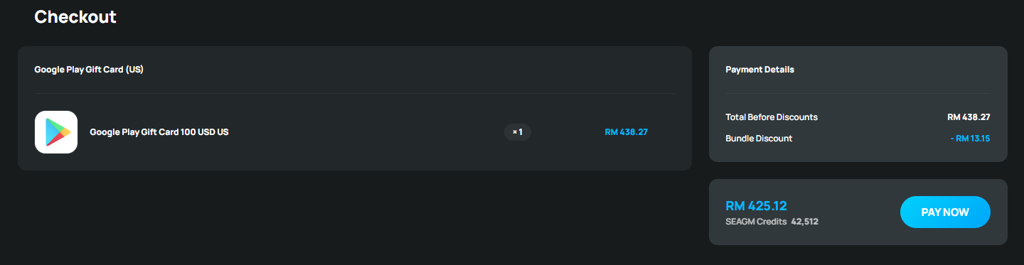 - The Google Play Gift Card sold in SEAGM was a region-currency-locked card. Please ensure the purchase gift card region is the same as your registered Google account.