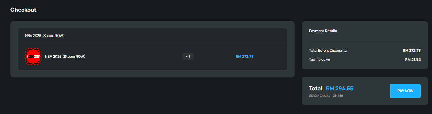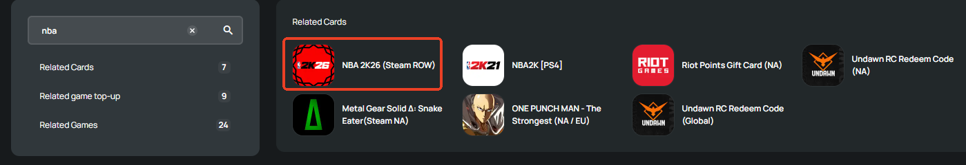 Step 1: Log in/register an account in SEAGM. On the top menu, enter the keywords "NBA" and search. Select " NBA 2K26 (Steam ROW)".