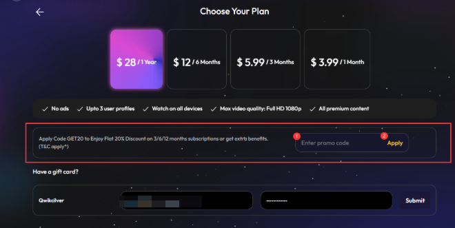 Step 5: Enter the PIN code you purchased from SEAGM at the [Enter promo code] section and click [apply].