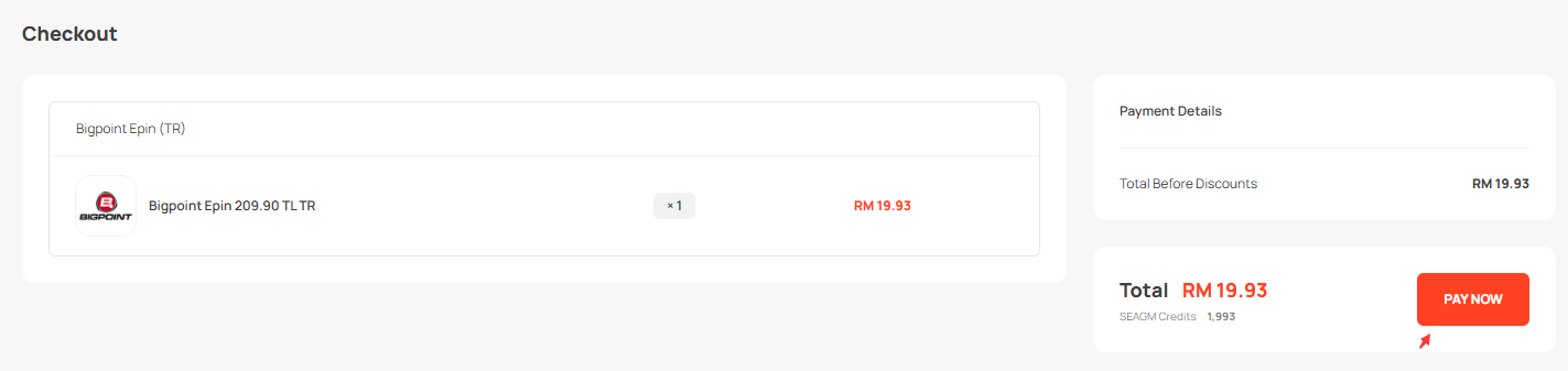Important Notice: Bigpoint Epin (TR) sold by SEAGM is region-restricted and can only be used by accounts registered in Turkey. All purchases are final and cannot be refunded or returned.