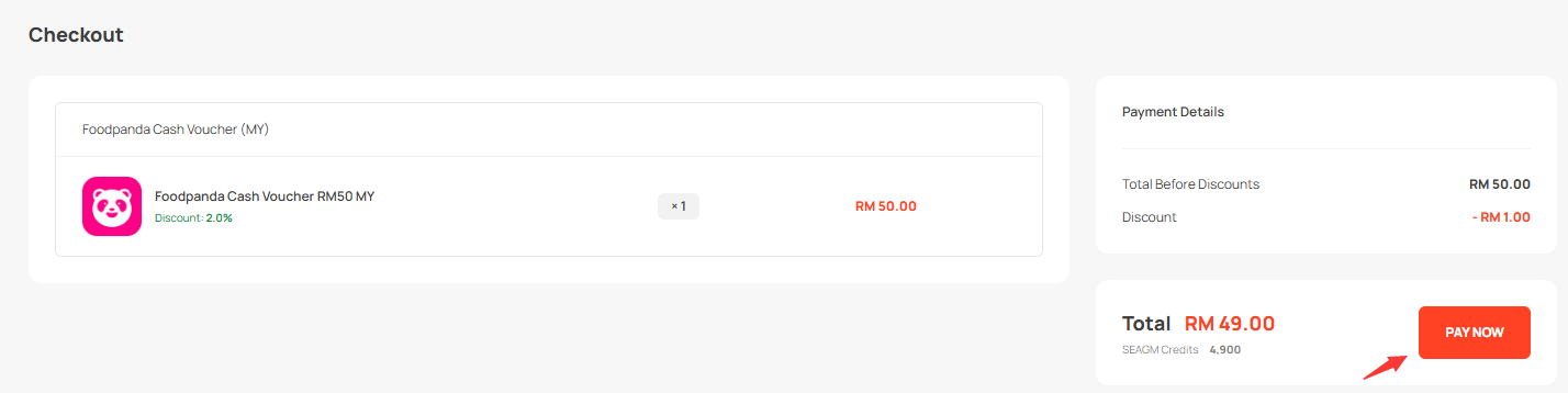 Important Notice: Foodpanda Cash Vouchers (MY) sold by SEAGM are valid for use in Malaysia only. All purchases are strictly non-refundable and non-returnable.