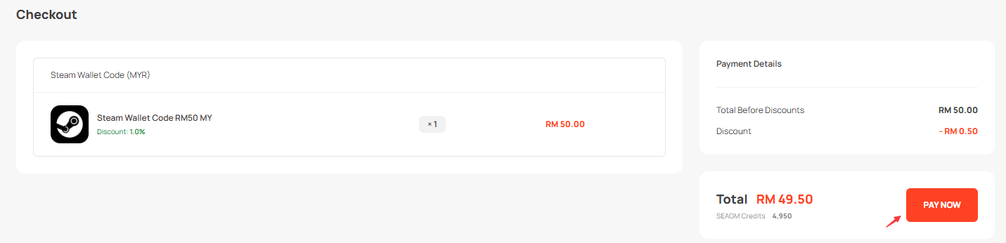 - The Steam Wallet Code sold in SEAGM was a region-currency-locked card. Steam users can only redeem it according to their original currency settings.