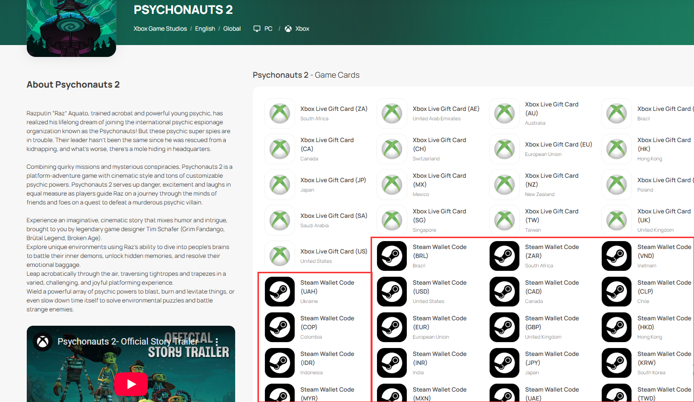 Step 2: Scroll down the page and select the Steam Wallet Code gift card based on your account region's currency.