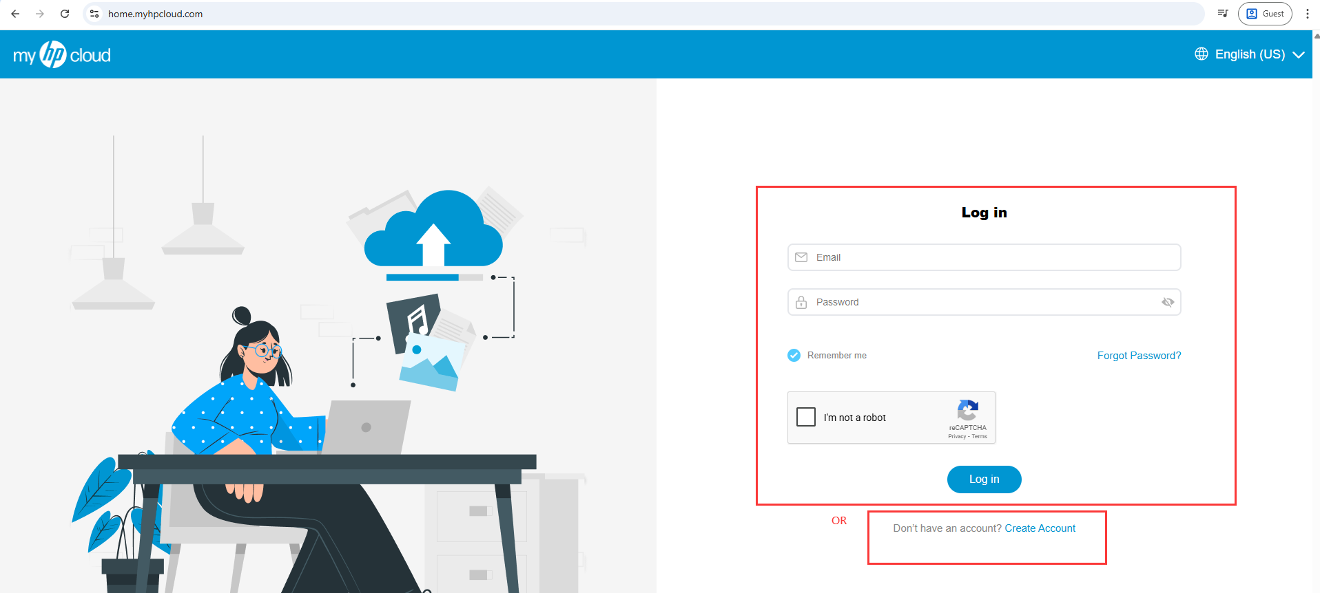 Step 2: Visit the myHPcloud official webpage and proceed with login or register an account.