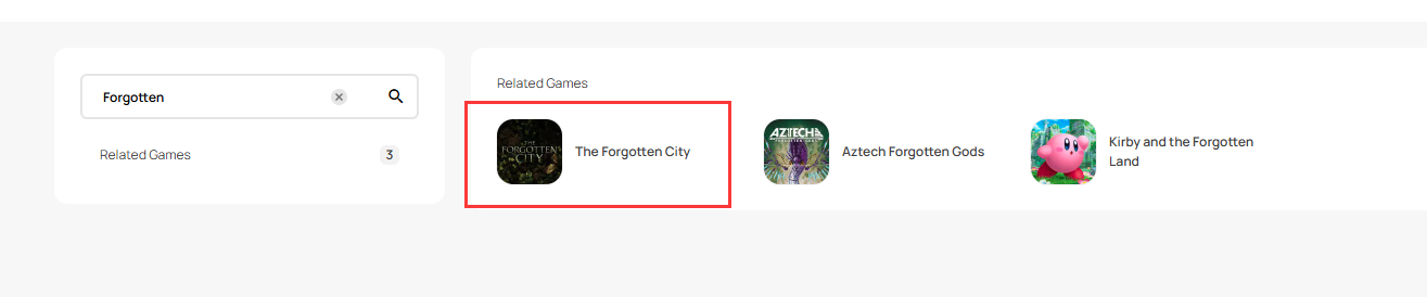 Step 1: Log in/register an account in SEAGM. On the top menu, enter the keywords "Forgotten" and search. Select "The Forgotten City".