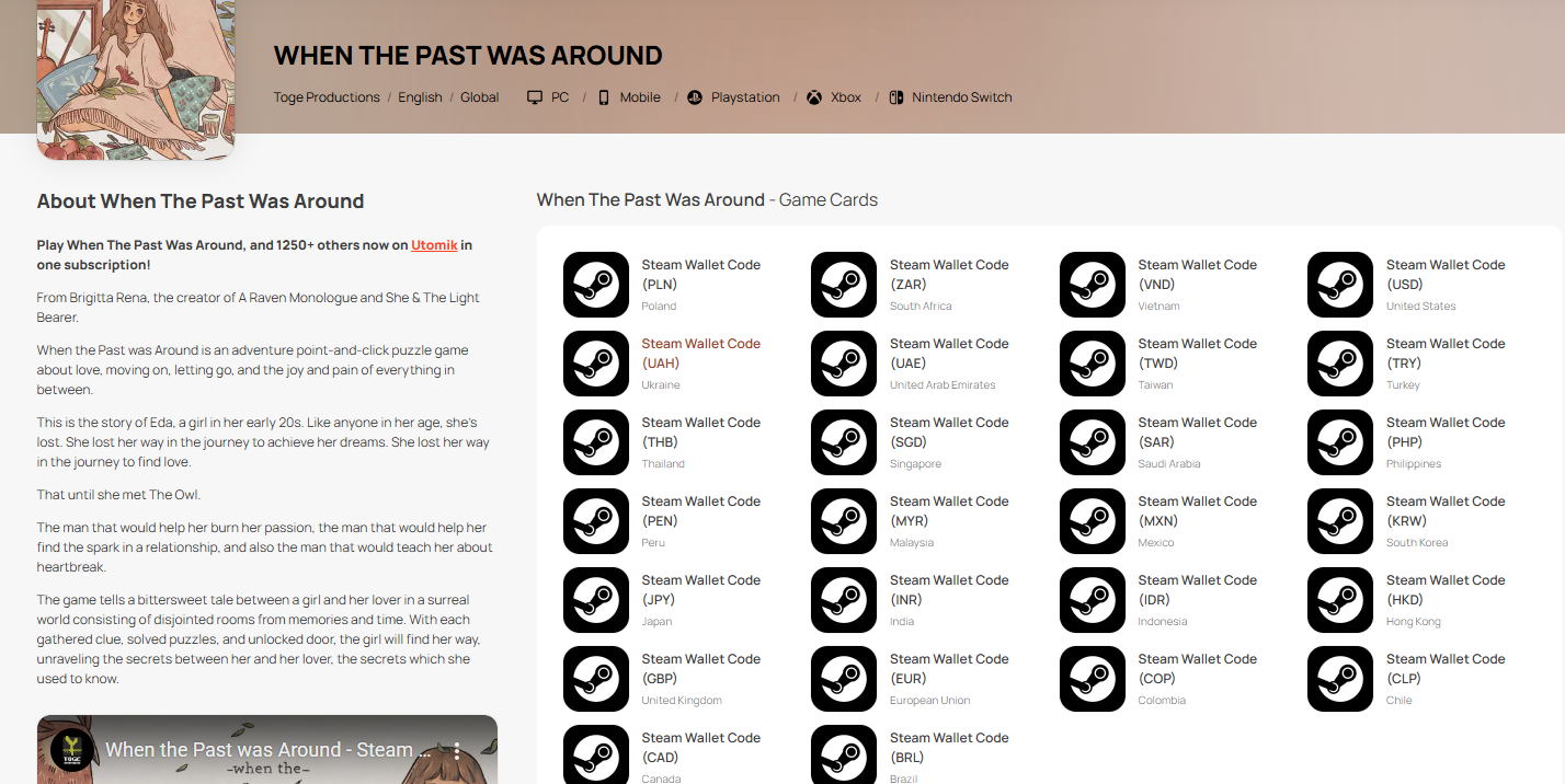 When the Past was Around is an adventure point-and-click puzzle game about love, moving on, letting go, and the joy and pain of everything in between.