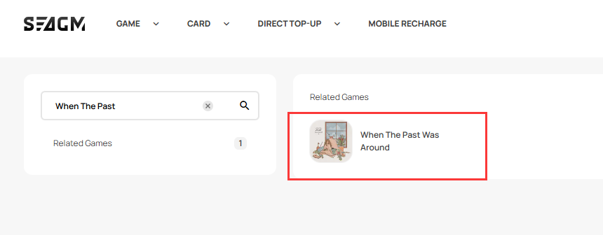Step 1: Log in/register an account in SEAGM. On the top menu, enter the keywords "When The Past" and search. Select "When The Past Was Around".