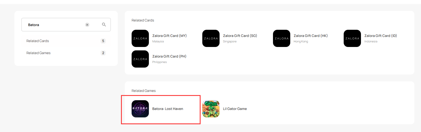 Step 1: Log in/register an account in SEAGM. On the top menu, enter the keywords "Batora" and search. Select "Batora: Lost Haven".
