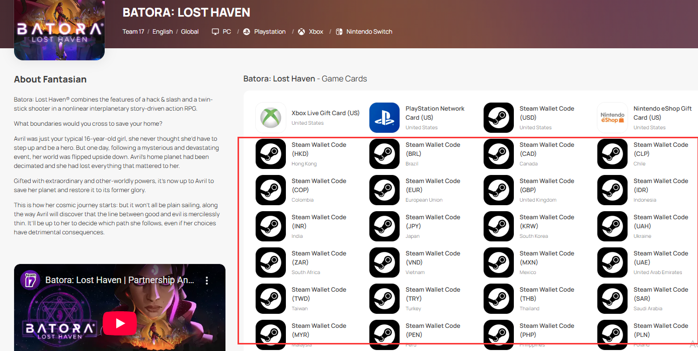 Step 2: Scroll down the page and select the Steam Wallet Code gift card based on your account region's currency.