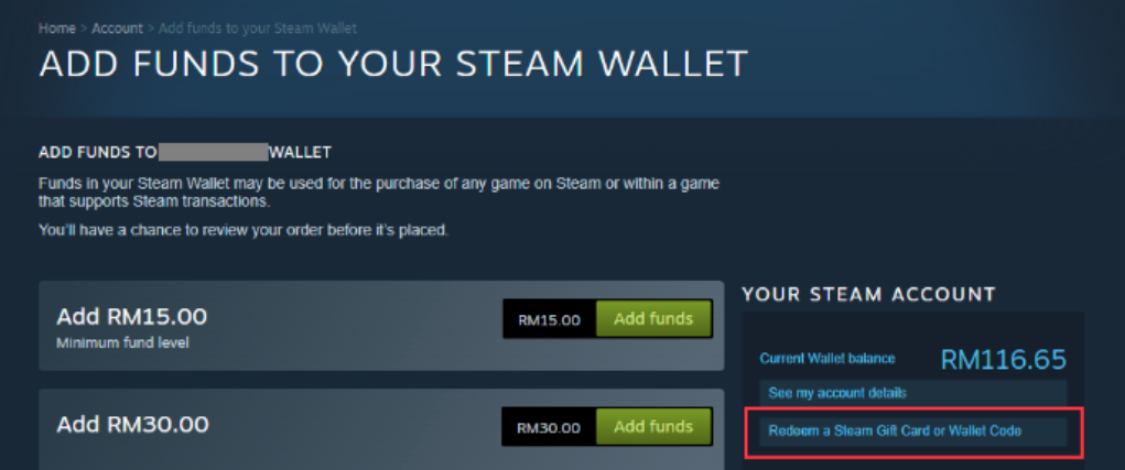 Step 4: Select [Redeem a Steam Gift Card or Wallet Code].