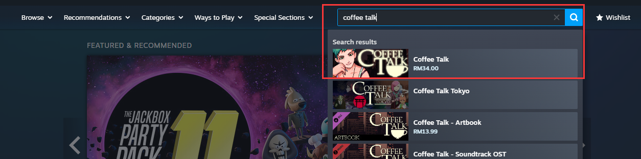 Step 6: Return to the main page, search [Coffee Talk] and select the game once reloaded to your account balance.