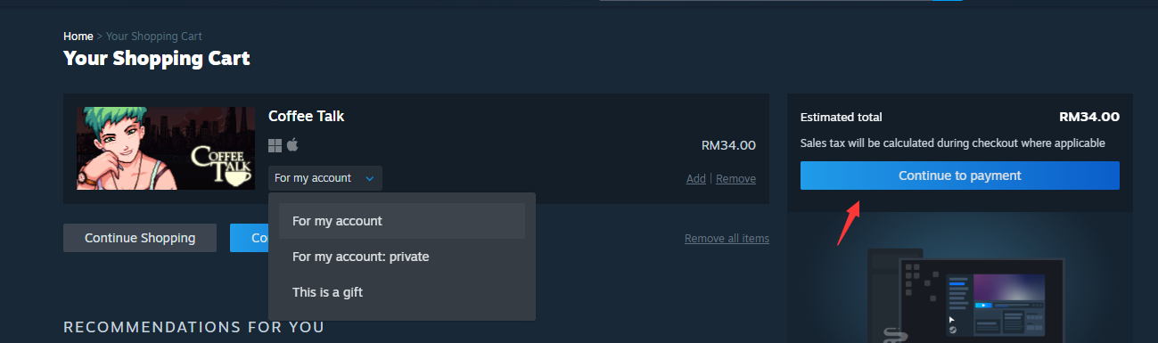 Step 9: Choose whether for self or friends. Then, click on [Continue to Payment].
