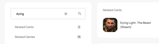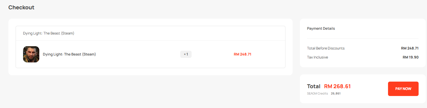 Step 1: Login or register an account in SEAGM. On the top menu, enter the keywords "Dying" and search. Select "Dying Light: The Beast (Steam)".