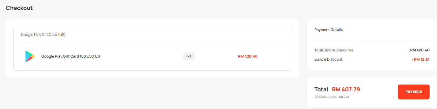 - The Google Play Gift Card sold in SEAGM was a region-currency-locked card. Please ensure the purchase gift card region is the same as your registered Google account.