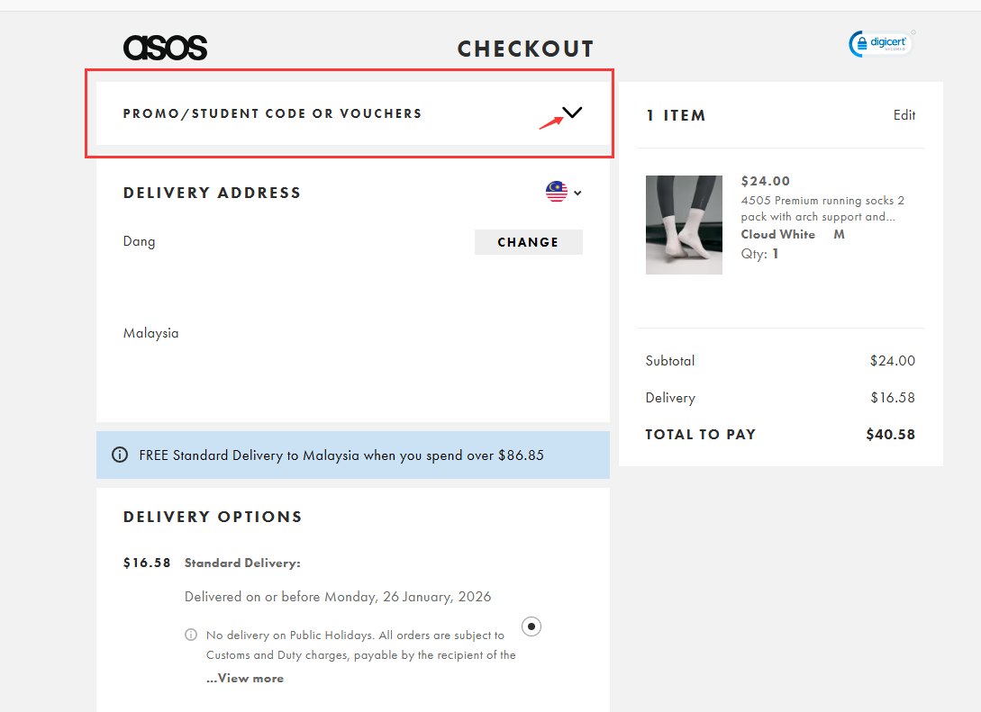Step 6: After adding the gift card, you can start shopping. At the checkout page, go to the [Promo/Student Code or Vouchers] section to apply your gift card balance.