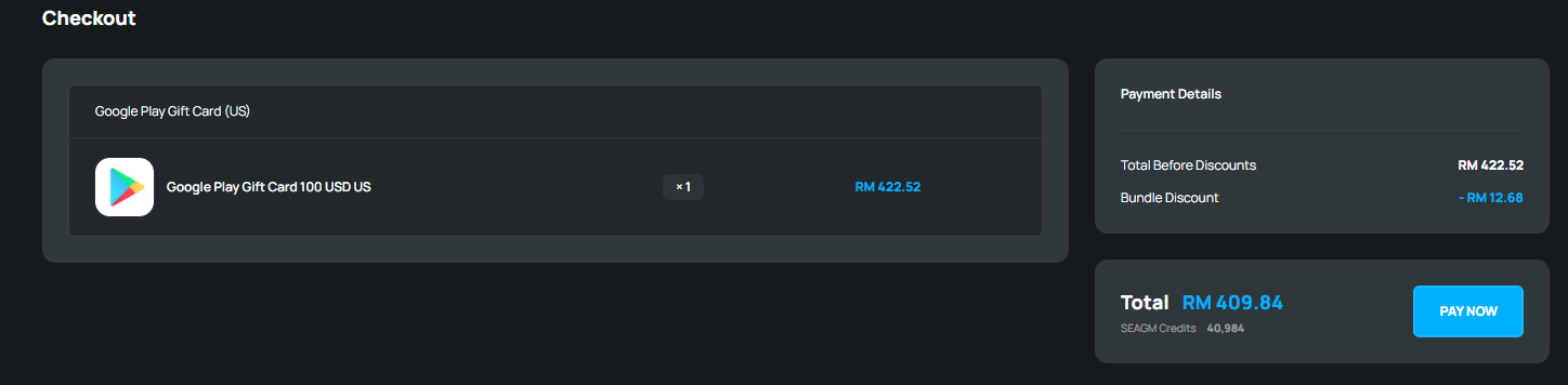 - The Google Play Gift Card sold in SEAGM was a region-currency-locked card. Please ensure the purchase gift card region is the same as your registered Google account.