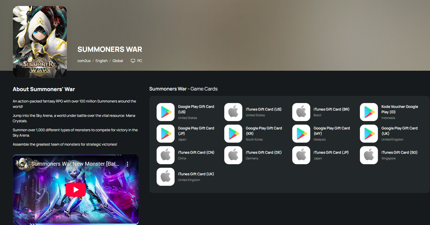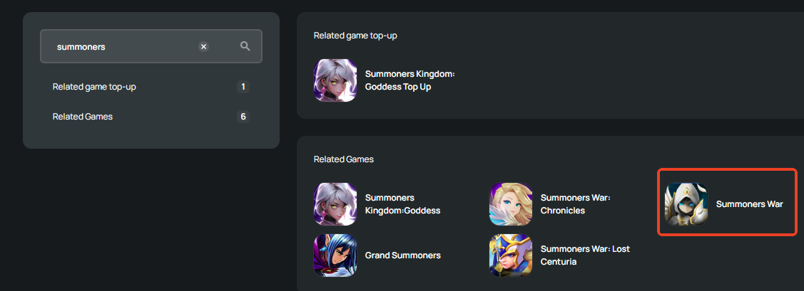 Step 1: Log in/register an account in SEAGM. On the top menu, enter the keywords "Summoners" and search. Select " Summoners War".