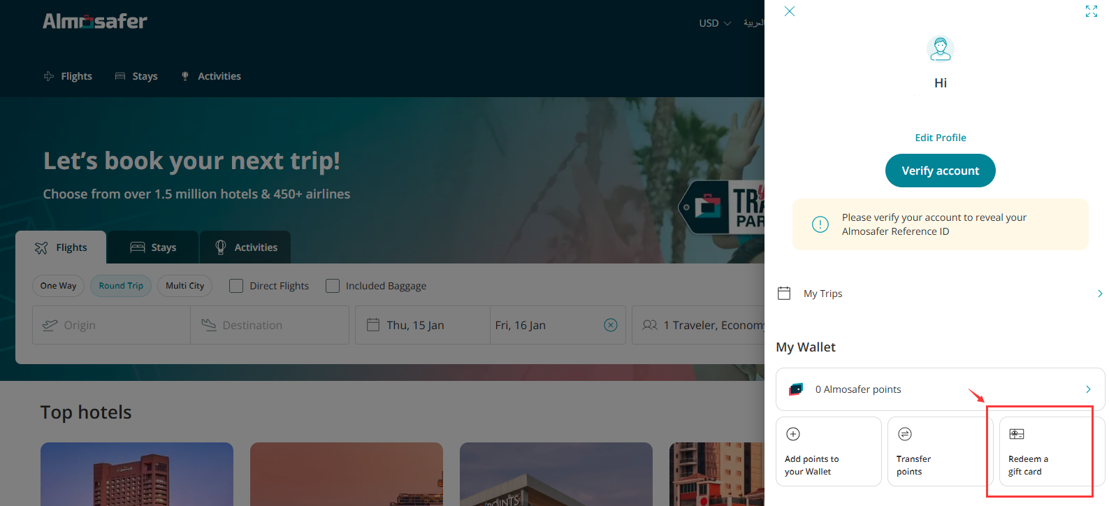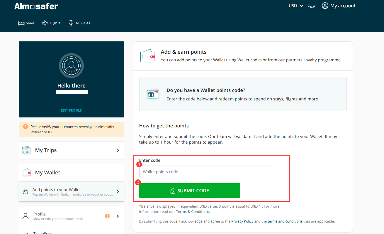 Step 6: After submission, the points will appear in your Almosafer Wallet within 60 minutes. You can then use these points to redeem bookings.