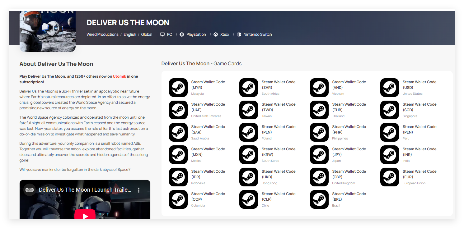 Step 1: Log in/register an account in SEAGM. On the top menu, enter the keywords "Deliver Us" and search. Select "Deliver Us The Moon".