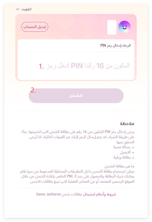 Step 3: Enter the code purchased from SEAGM and click [الشحن].