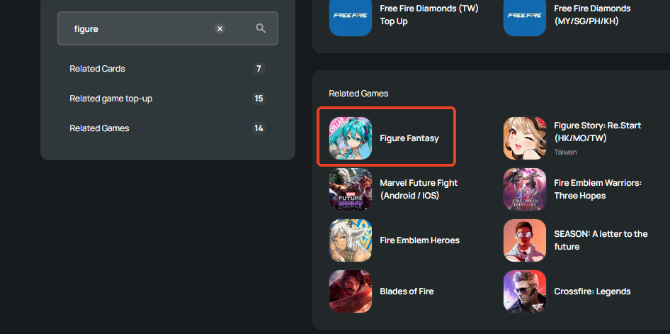 Step 1: Log in/register an account in SEAGM. On the top menu, enter the keywords "Figure" and search. Select "Figure Fantasy".