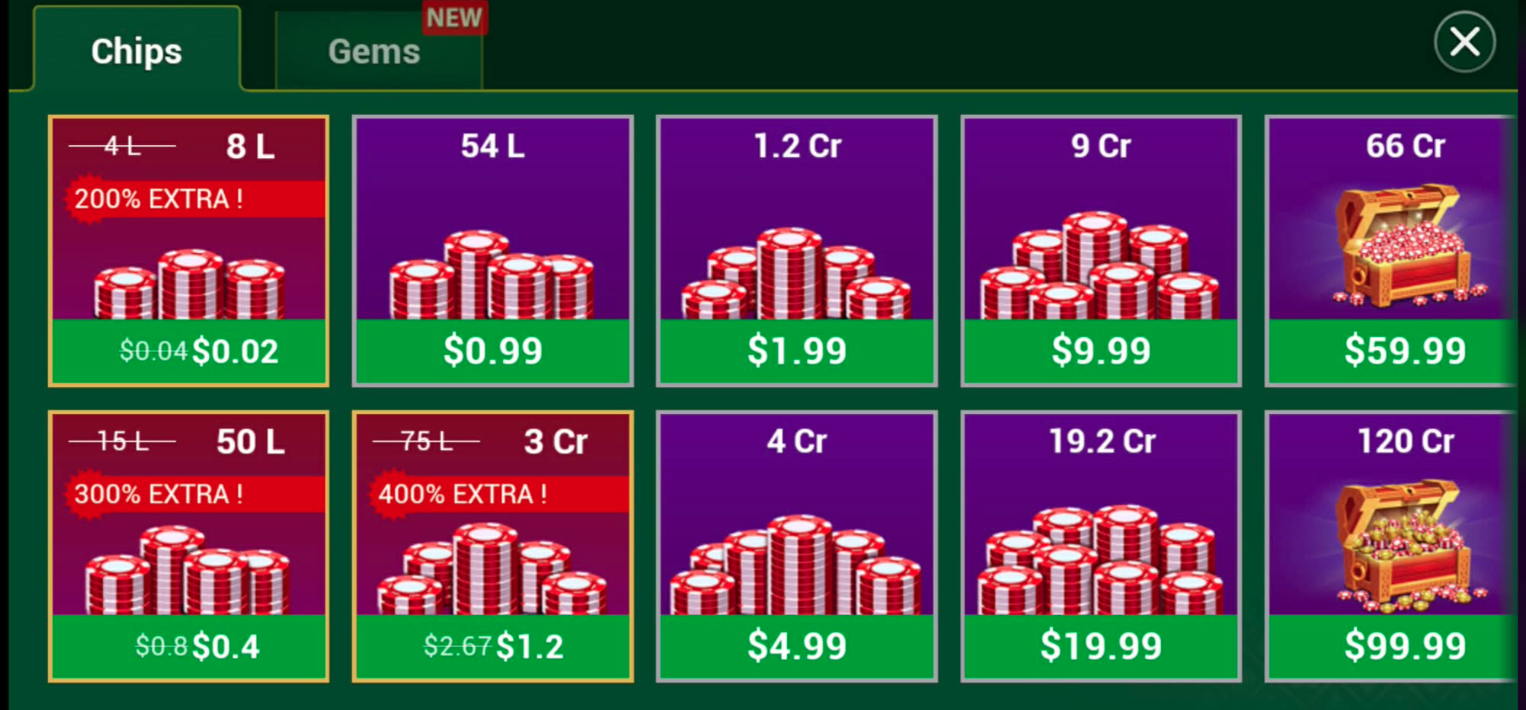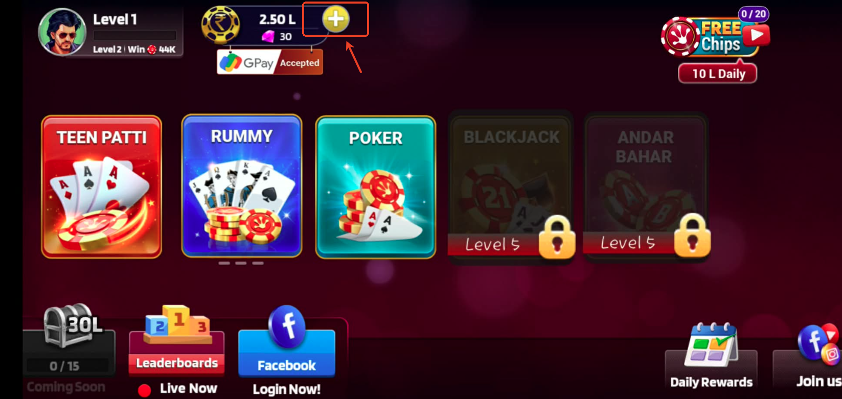 Step 2: Install and start the application then tap the "+" icon at the left side of your screen and select your preferred amount of chips.