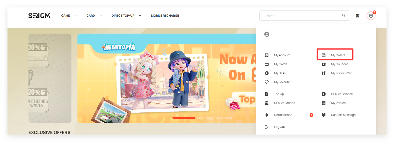 1. Log in to your SEAGM account. Visit the SEAGM website and sign in using your registered email address and password.