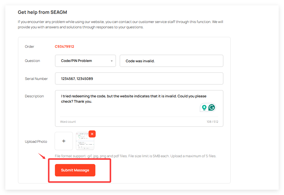 After you submit your message, the SEAGM Card team will review your request and get back to you with updates as soon as possible.