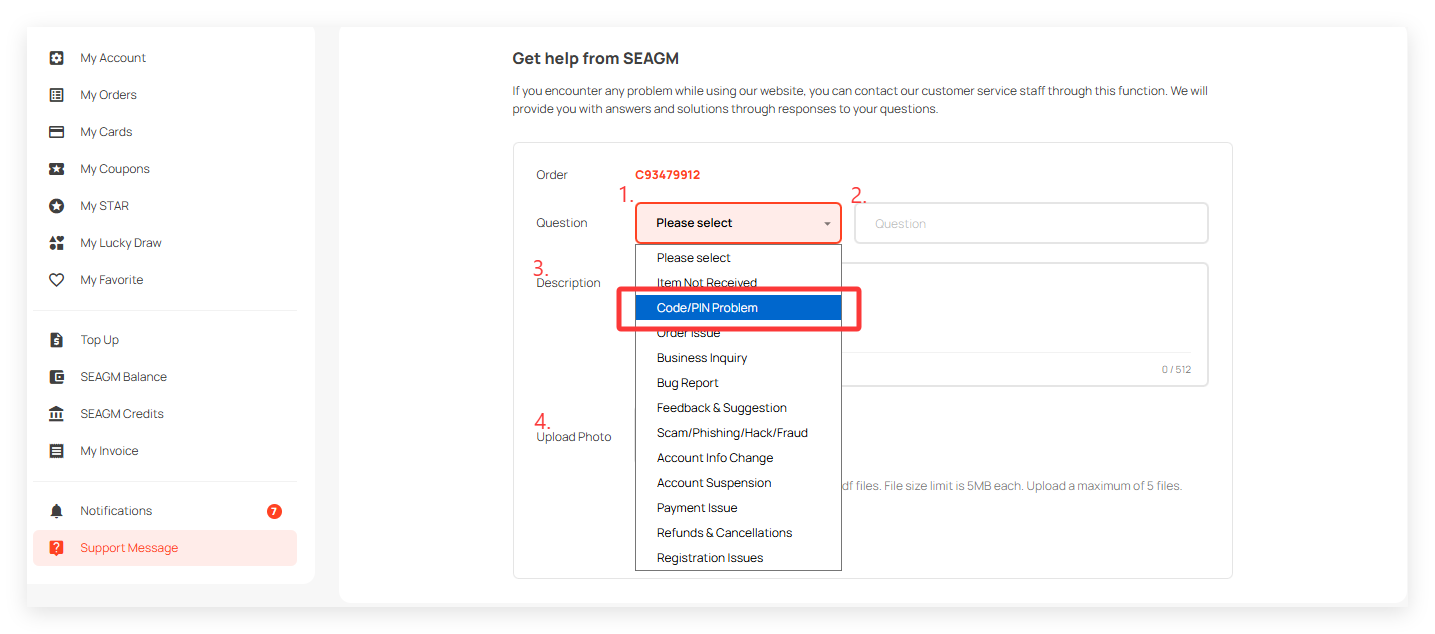 If you encounter a problem with your code or PIN, you can follow these steps to get assistance from the SEAGM team: