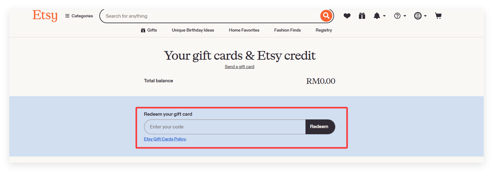 Step 4: You will be redirected to the credit balance page. Locate the “Redeem your gift card” section.
