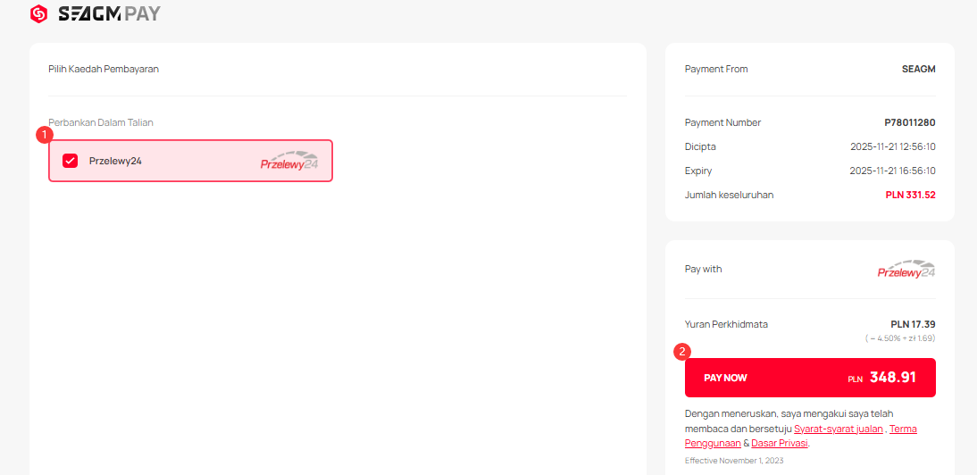 1. Kaedah pembayaran Przelewy24 HANYA tersedia untuk pengguna Poland di bawah złoty Poland [PLN] dalam SEAGM.