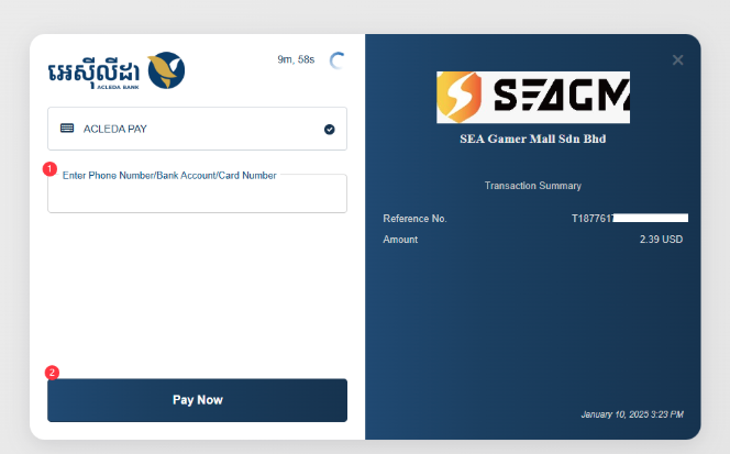 Langkah 2: Pilih Acleda di bawah bahagian pembayaran dalam talian dan klik pada "Bayar Sekarang".