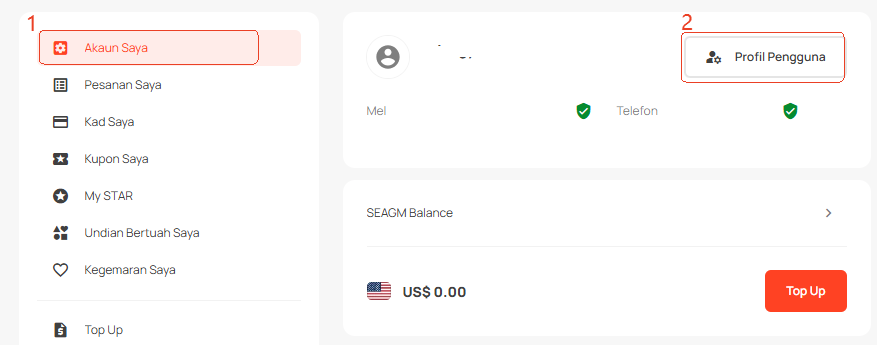 Langkah 1: Log masuk ke akaun SEAGM anda. Kemudian di halaman utama, klik ikon pengguna.