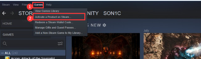 Langkah 4: Kemudian, pilih "Aktifkan Produk pada Steam".