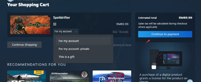 Langkah 9:Pilih sama ada untuk diri sendiri atau untuk rakan. Kemudian, klik pada[Teruskan ke Pembayaran].