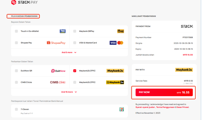 Langkah 4: Sila sahkan jumlah dan kuantiti yang dipilih, kemudian klik "Bayar Sekarang" setelah disahkan.