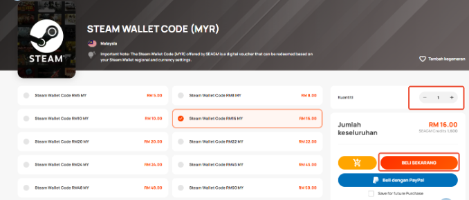 - Kod Steam Wallet yang dijual di SEAGM ialah kad yang dikunci mata wang rantau. Pengguna Steam hanya boleh menebus Kod Steam Wallet mengikut tetapan mata wang asal mereka.